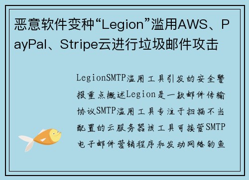 Legion:SMTP滥用工具引发的安全警报重点概述Legion是一款邮件传输协议SMTP滥用工具,专注于扫描不当配置的云服务器。该工具可接管SMTP电子邮件营销程序和发动网络钓鱼攻击。Legion可...