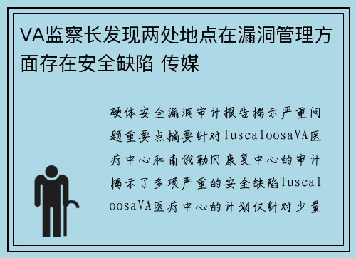硬体安全漏洞审计报告揭示严重问题重要点摘要针对Tuscaloosa VA医疗中心和南俄勒冈康复中心的审计揭示了多项严重的安全缺陷。Tuscaloosa VA医疗中心的计划仅针对少量高风险漏洞进行了修复...