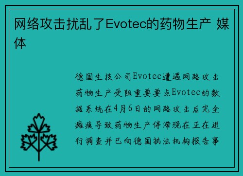 德国生技公司Evotec遭遇网路攻击,药物生产受阻重要要点Evotec的数据系统在4月6日的网路攻击后完全瘫痪,导致药物生产停滞。现在正在进行调查,并已向德国执法机构报告事件。虽然Evotec尚未恢复...
